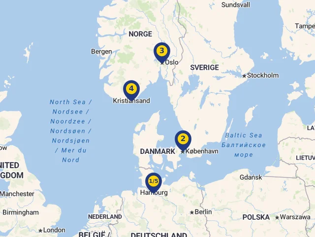 4Kristiansand, Nórsko07. 01. 2027, príchod o 08:00, odchod o 18:00