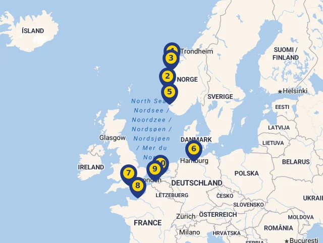 Spoznajte miesta, kde Vaša loď počas plavby zakotví! Každá zastávka je označená číslom, ktoré zodpovedá jej pozícii na mape, aby ste mohli jednoducho sledovať celú trasu. Stačí kliknúť na vybranú destináciu a zistíte viac o každej z nich. Pre ešte lepší prehľad si môžete celý program plavby prezrieť priamo na mape.