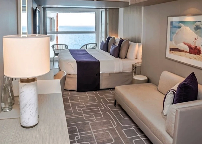 - Kajuty sú umiestnené v blízkosti lodného Spa. K ich vybaveniu patrí posilnený systém vzdušnej filtrácie, posteľ Queen-Size (v kategóriách Edge King-Size), veľké zasúvacie sklenené dvere, exkluzívne posteľné prádlo eXhale®, veľkorysé skladovacie priestory.