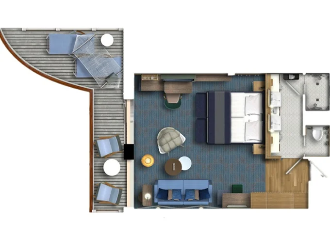 JKAO - Junior Suite s balkónom 26 m² + balkón 7 m² so stolom. 10,11. paluba. Max 4 osoby. Výhody Junior Suite. 15 598 € 7 799 € za osobu