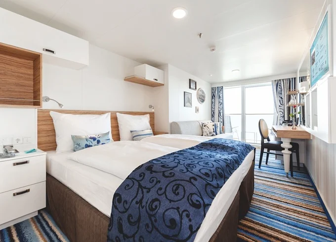 BKAO - Kajuta s balkónom kat. A 17 m² + balkón 5 m². 10. paluba. Max 4 osoby. 2 958 € 1 479 € za osobu